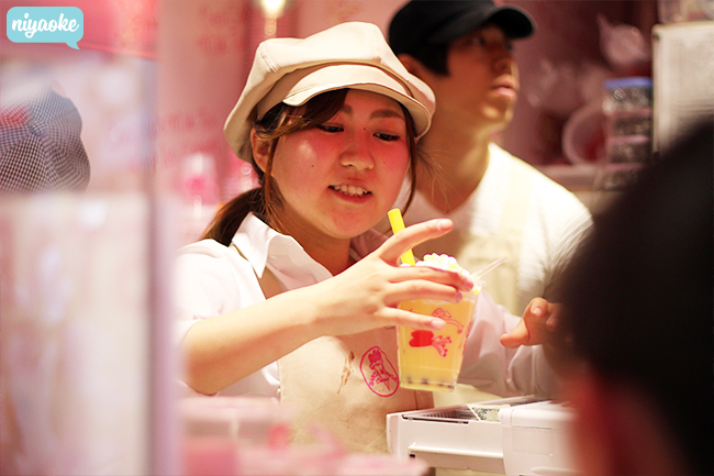 Nampaknya orang Jepang ini sangat suka crepes, hampir di setiap wilayah terdapat stall crepes yang ramai pengunjung. Karena penasaran sayapun turut meramaikan antrian salah satu stall crepes di Takeshita Dori yaitu Angel Crepes. Nah di tempat-tempat ini tidak hanya menjual crepes biasa seperti yang kita temukan di Jakarta, namun ada juga crepes-crepes yang saya bisa bilang luar biasa. Kenapa luar biasa? Karena isinya agak ajaib menurut saya, misalnya crepes berisi cheesecake (iyah satu slice cheesecake utuh), masih ditambah lagi dengan cokelat, buah, whipped cream atau custard, yang tidak bisa saya bayangkan jumlah kalori di dalamnya, namun jujur memang menggoda.
